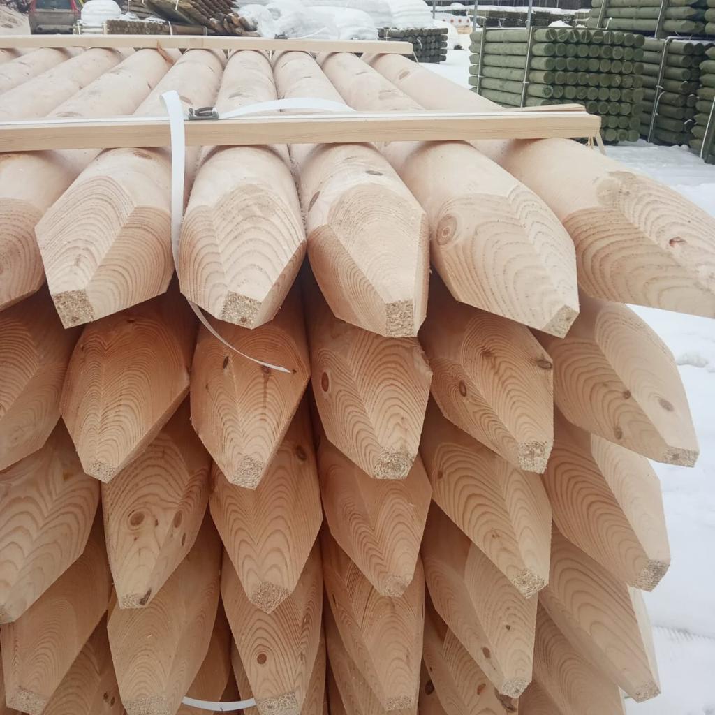 Деревянные оцилиндрованные столбы – это изделия, у которых один торец с фаской, другой заострен в виде четырехугольной пирамиды.