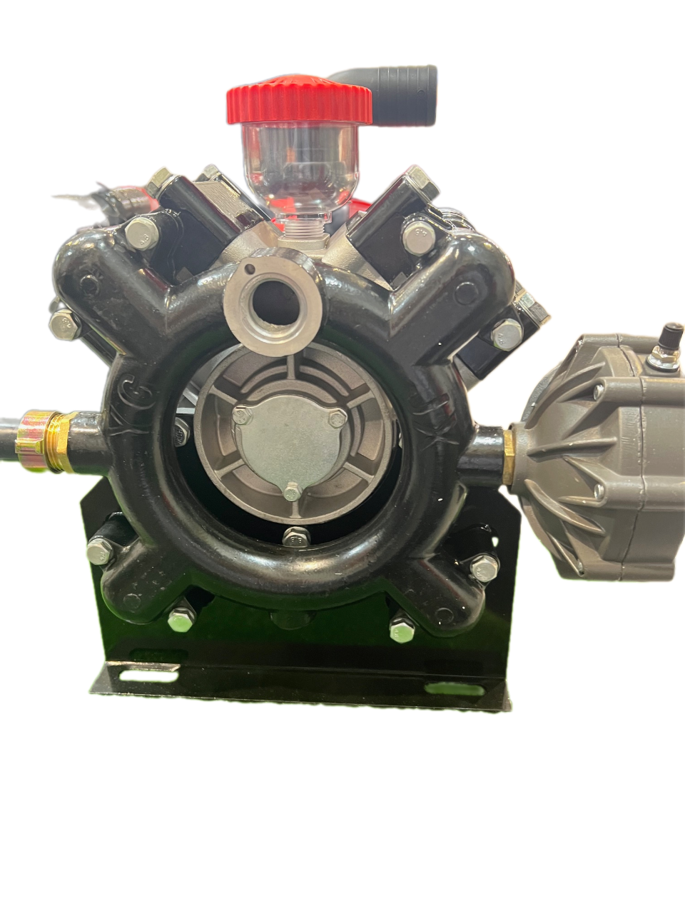 Насос оснащен гидро-пневматическим демпфером, обеспечивающим высокую равномерность работы и снижение пульсации.
